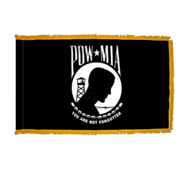 Double sided POW/MIA flag with fringe, perfect for indoor and parade use. Made 100% in the USA ..